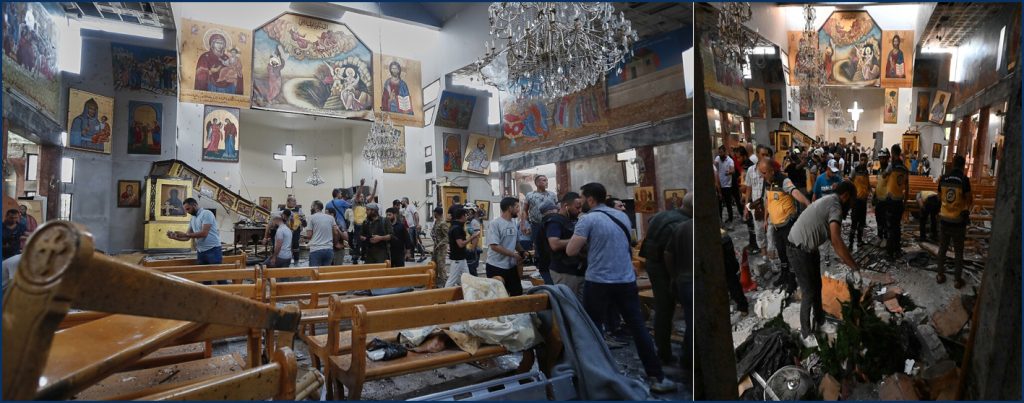 சிரியாவின் கிழக்கு டமாஸ்கஸில் உள்ள தேவாலயத்தில் ஐ.எஸ். உடன் தொடர்புடைய தற்கொலை படையைச் சேர்ந்தவர் நடத்திய வெடிகுண்டு தாக்கதலில் 22 பேர் பலியாகி உள்ளனர். மேலும் பலர் காயமடைந்துள்ளனர். சிரியாவில், அசாத்தின் ஆட்சிக் கவிழ்ப்புக்குப் பிறகு சிரியாவில் உள்ள பல சிறுபான்மையினரில் ஒருவரான கிறிஸ்தவர்களை குறிவைத்து நடத்தப்பட்ட முதல் பெரிய தாக்குதல் இதுவாகும்.