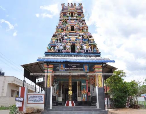 மேற்கு பார்த்து கோயில் அமைந்துள்ளது. மூன்று நிலை மூன்று கலசத்துடன் மேற்கு பார்த்து ராஜ கோபுரம் அமைந்துள்ளது. வள்ளி தெய்வானையுடன் முருகன், துர்க்கை, லிங்கோத்பவர், தட்சிணாமூர்த்தி, கொடிமரம் இங்குள்ளது. பதிணென் சித்தர்கள் உருவம் கோயிலின் உப்புறம் வரையப்பட்டுள்ளது.