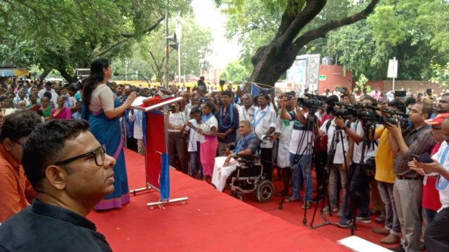 அகில இந்திய விவசாயிகள் சங்க மதிப்புறு தலைவர் ஹன்னன் முல்லா, அனைத்திந்திய ஜனநாயக மாதர் சங்க நிர்வாகி சோனியா, இந்திய மாணவர் சங்கத் தலைவர் ஆதர்ஷ், மாற்றுத்திறனாளிகள் தேசிய ஒருங்கிணைப்புக்குழு தலைவர் அர்மன் அலி ஆகியோரும் உரை நிகழ்த்தினர்.