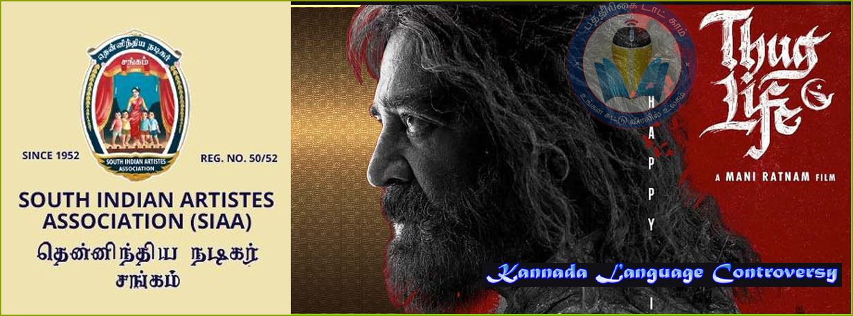 பிரபல இயக்குனர் மணிரத்னம் இயக்கத்தில் கமல் மற்றும் சிலம்பரசன் முன்னணி கதாப்பாத்திரத்தில் நடித்துள்ள படம் ‘தக் லைஃப்’. இப்படத்தில் திரிஷா, ஜோஜு ஜார்ஜ், அசோக் செல்வன், நாசர், அபிராமி மற்றும் பலர் முக்கிய கதாப்பாத்திரத்தில் நடித்துள்ளனர். இத்திரைப்படம் வரும் ஜூன் மாதம் 5-ந்தேதி வெளியாகவுள்ளது. இந்த படத்தின் ஆடியோ வெளியிட்டு விழாவில் கலந்துகொண்டு பேசிய, கமல்ஹாசன் கன்னட மொழி தமிழில் இருந்து பிறந்தது என்று கூறினார். இதற்கு கர்நாடக முதல்வர் சித்தராமையா உள்பட கன்னட அமைப்புகள் கடும் எதிர்ப்பு தெரிவித்து வருகின்றன.