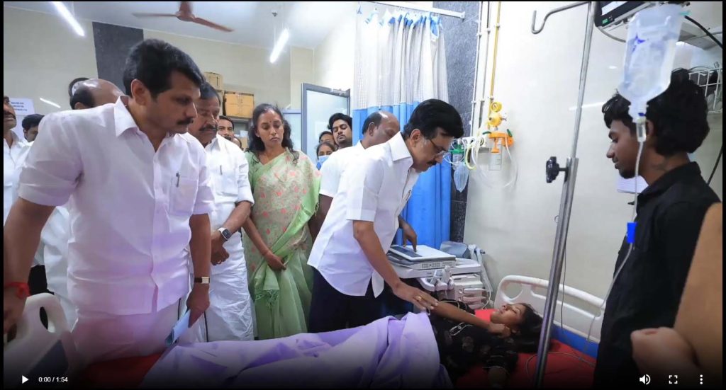 கரூரில் நடைபெற்ற விஜய் பிரசார கூட்டத்தில் ஏற்பட்ட கூட்ட நெரிசலில் சிக்கி 39 பேர் உயிரிழந்தனர். மேலும் பலர் சிகிச்சை பெற்று வருகின்றனர். இதுகுறித்து தகவல் அறிந்ததும் முதல்வர் ஸ்டாலின் இரவோ, தலைமைச்செயலகம் வந்து மூத்த அதிகாரிகள், அமைச்சர்களுடன் ஆலோசனை நடத்தியதுடன், இறந்தவர்கள் குடும்பத்துக்கு ரூ.10 நிதி அறிவித்தார். மேலும் இதுகுறித்து விசாரணை நடத்த ஒருநபர் ஆணையம் அமைப்பதாகவும் கூறினார்.