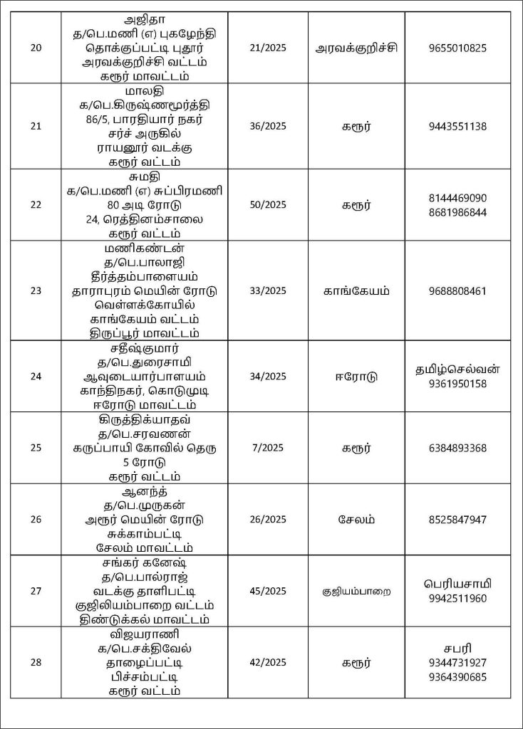 சென்னை: கரூரில் விஜய் பிரசார கூட்டத்தில் ஏற்பட்ட கூட்ட நெரிசலில் சிக்கி உயிரிழந்தோர் எண்ணிக்கை 39ஆக உயர்ந்த நிலையில், பலியானவர்களில் 35 பேரின் உடல்கள் அவர்களின் குடும்பத்தினரிடம் ஒப்படைக்கப்பட்டு வருகிறது. இறந்தவர்கள் விவரம் வெளியிடப்பட்டுள்ளது.