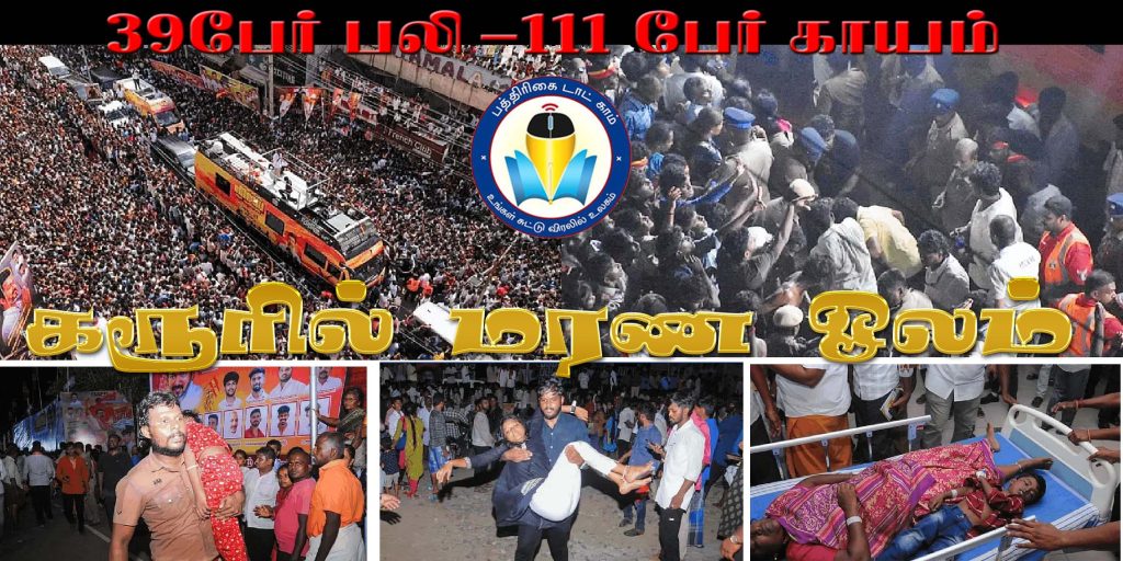 தவெக தலைவர் விஜய் நேற்று பிரசாரம் கரூரில் வேலுச்சாமிபுரம் பகுதியில் பிரசாரம் செய்தார். அவருக்கு பிரசாரத்துக்கு போலீசார் உரிய பாதுகாப்பு வழங்கவில்லை என்று கூறப்படுகிறது. இதனால் அலைகடலென கூடிய கூட்டத்தில், விஜய் பேசி முடித்து புறப்பட்டபின், கூட்டம் கலைந்து செல்லும்போது கூட்ட நெரிசல் ஏற்பட்டது. இந்த கூட்ட நெரிசலில் சிக்கி 10 குழந்தைகள், 17 பெண்கள் உட்பட 39 பேர் உயிரிழந்தனர். மேலும், கரூர் அரசு மருத்துவக்கல்லூரி மருத்துவமனையில் 50 பேரும், கரூரில் உள்ள தனியார் மருத்துவமனைகளில் 61 பேரும் என மொத்தம் 111 பேர் தொடர்ந்து சிகிச்சை பெற்று வருகின்றனர். இதில் 17 பேர் தீவிர சிகிச்சை பிரிவில் அனுமதிக்கப்பட்டு சிகிச்சை அளிக்கப்பட்டு உள்ளனர். இந்த சம்பவம் பெரும் சோகத்தை ஏற்படுத்தியுள்ளது.