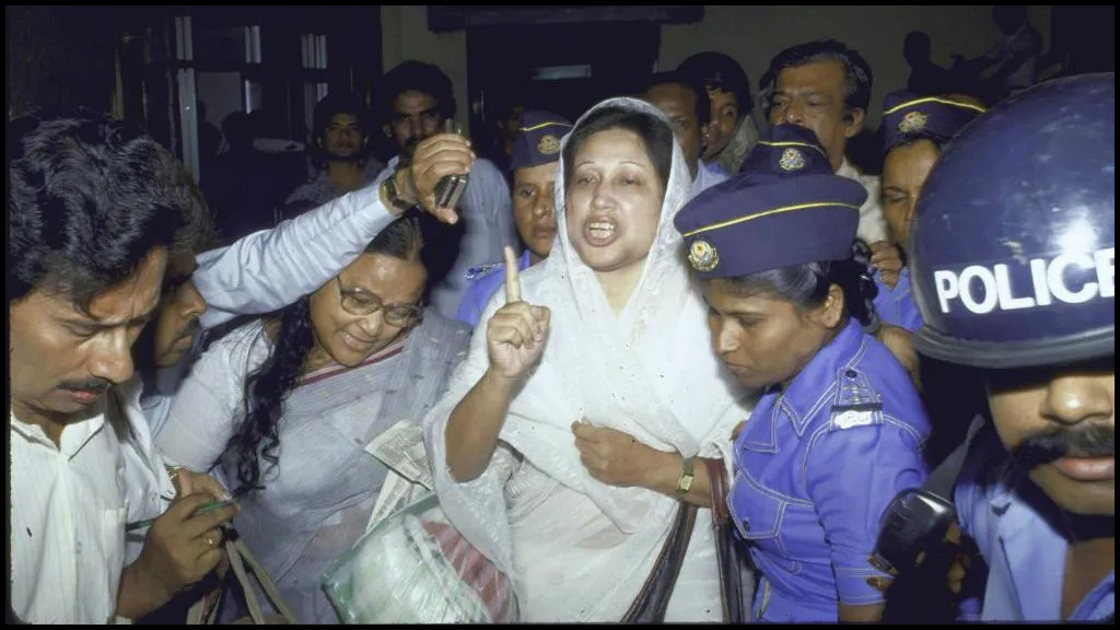 1995-ல் பிரதமராக தனது முதல் பதவிக்காலத்தில் இருந்த காலிதா ஜியா கிட்டத்தட்ட வீட்டுக் காவலில் வைக்கப்பட்டார்.