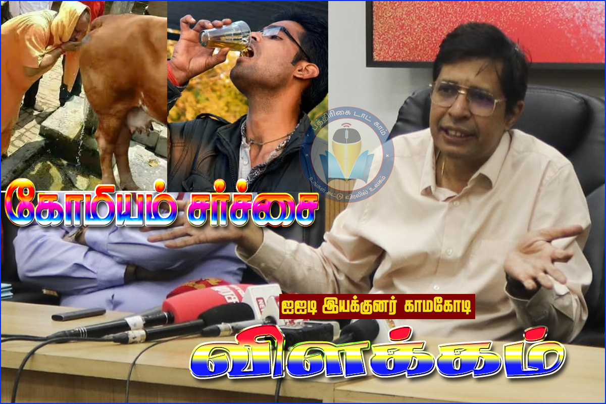 ஜனவரி 15ந்தேதி அன்று மாட்டுப் பொங்கலையொட்டி சென்னையில் நடைபெற்ற விழாவில் கலந்துகொண்ட சென்னை ஐஐடி இயக்குநர் வி.காமகோடி, நிகழ்ச்சியில் பேசும்போது, ‘‘மாட்டு கோமியத்தில் நோய் எதிர்ப்பு சக்தியை அதிகரிக்கும் மருத்துவ குணம் உள்ளது’’ என்று தெரிவித்திருந்தார். அதாவது, “கோமியம் சிறந்த மருத்துவ குணத்தைக் கொண்டது. காய்ச்சலைக் குணமாக்கும். பாக்டீரியா பாதிப்பு, பூஞ்சை பாதிப்புகளுக்கு எதிராகக் கோமியம் செயல்படக் கூடியது. மேலும் இது, செரிமான கோளாறு உள்ளிட்ட உடல் பாதிப்புகளை எதிர்க்கும் ஆற்றல் கொண்டது” எனப் பேசியிருந்தார்.