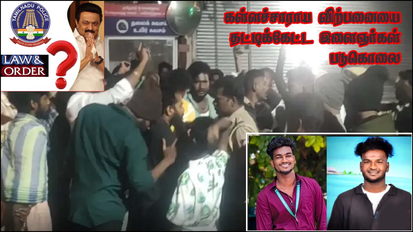 இந்த நிலையில், மயிலாடுதுறை அருகே வேலைதேடும் இளைஞர்கள் இருவர், அந்த பகுதியில் கள்ளச்சாராயம் விற்பனையை தட்டிக்கேட்டதால் கொடூரமாக கொலை செய்யப்பட்டு உள்ளனர். விசாரணையில், பெரம்பூர் காவல் சரகத்திற்குட்பட்ட முட்டம் கிராமத்தில், கள்ளச்சாராயம் விற்பனை செய்து வந்த ராஜ்குமார், தங்கதுரை, மூவேந்தன் ஆகியோரிடம் இங்கு சாராயம் விற்பனை செய்யக்கூடாது என்று தட்டிக்ட்டுள்ளனர். இதை வேலைதேடும் பட்டதாரி இளைஞர்கள் 2 பேர், தட்டிக் கேட்டுள்ளனர். மேலும் அந்த பகுதியைச் சேர்ந்த யாராவது இங்கு சாராயம் விற்பனை செய்யக்கூடாது என்று கேட்டால், அவர்களை கொலை செய்து விடுவதாகவும் மிரட்டி வந்துள்ளனர். இதுகுறித்து அந்த பகுதி மக்கள் காவல்துறையில் புகார் கொடுத்துள்ளனர்.