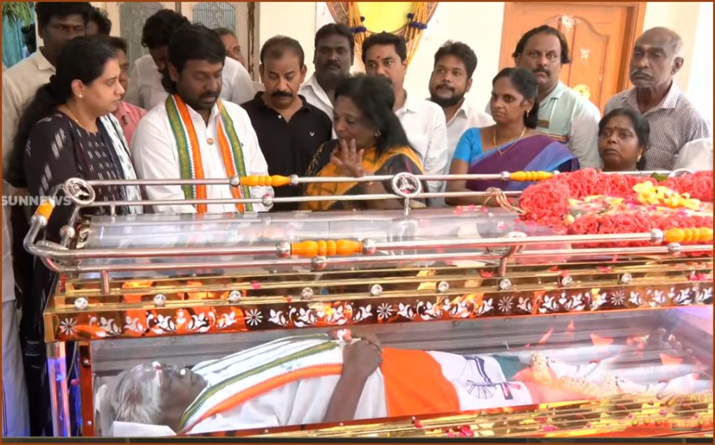 குமரி அனந்தன் உடலுக்கு முதல்வர் ஸ்டாலின் நேரில் வந்து அஞ்சலி செலுத்திய நிலையில், கவர்னர் ரவியும்நேரில் வந்து அஞ்சலி செலுத்தினார். தொடர்ந்து அரசியல் கட்சி தலைவர்கள், எழுத்தாளர்கள், இலக்கியவாதிகள்,  திரையுலகினர் என பல தரப்பினரும் நேரில் வந்து அஞ்சலி செலுத்தி வருகின்றனர்.