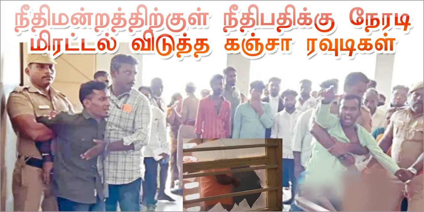 ஏற்கனவே தமிழ்நாடு கஞ்சா போன்ற போதை பொருட்கள் கடத்தல், விற்பனை மற்றும் போதைக்கு அடிமையானோர் அதிகரித்துள்ள மாநிலமாக திகழ்ந்து வரும் நிலைல், கஞ்சா கடத்தல் வழக்கில் 12 ஆண்டுகள் சிறைதண்டனை விதிக்கப்பட்ட ரவுடிகள், காவல்துறையினர் முன்னிலையிலேயே நீதிமன்றத்திற்குள்ளேயே நீதிபதியை கொல்லுவோம் என எச்சரிக்கை விடுத்து இருப்பது பெரும் பரபரப்பை ஏற்படுத்தி உள்ளது. இதுபோன்ற குற்றவாளி களை முலையிலேயே கிள்ளி எரிய வேண்டியது அவசியம் என நெட்டிசன்கள் கூறி வருகின்றனர்.