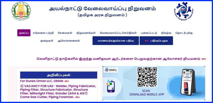 கூடுதல் விவரங்களுக்கு அயல்நாட்டு வேலை வாய்ப்பு நிறுவனம் இணையதளம் www.omcmanpower.tn.gov.in மற்றும் தொலைபேசி எண் 044-22502267 , whatsapp எண் 9566239685 வாயிலாக அறிந்துகொள்ளலாம்.