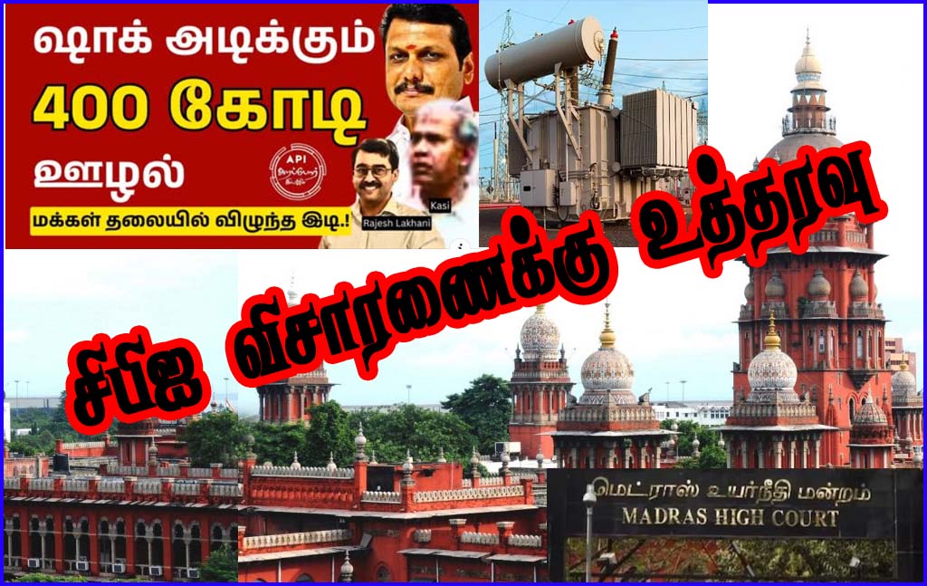 திமுகவின் 2021 முதல் 2023 வரையிலான காலக்கட்டத்தில், மின்வாரிய துறை அமைச்சராக இருந்த செந்தில் பாலாஜி மீது, தமிழ்நாடு மின்சார வாரியத்தில் அறப்போர் இயக்கம் வெளிக்கொண்டு வந்த ரூ 397 கோடி டிரான்ஸ்பார்மர் ஊழல் புகாரில் CBI முதல் தகவல் அறிக்கை பதிவு செய்து விசாரணை செய்ய அறப்போர் வழக்கில் சென்னை உயர் நீதிமன்றம் தீர்ப்பு வழங்கி உள்ளது.