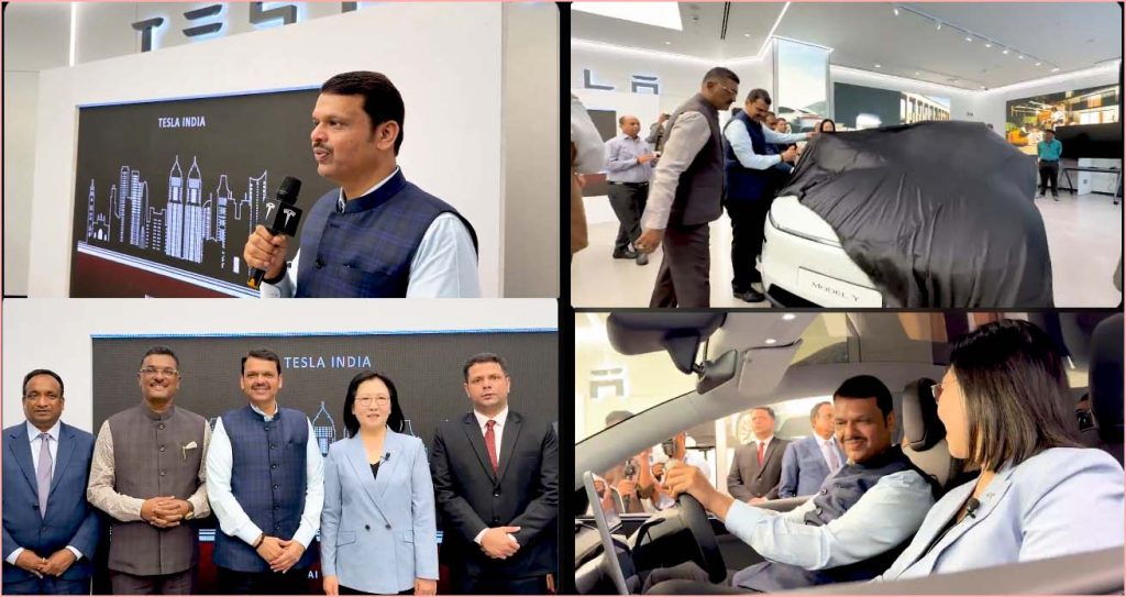 மும்பை: எலன்மஸ்க் நிறுவனத்தின் முதல் டெஸ்லா ஷோரூம் இந்தியாவில், மகாராஷ்டிரா மாநில தலைநகர் மும்பையில் இன்று திறக்கப் பட்டுள்ளது. முதல்வர் பட்னாவிஸ் முதல் ஷோரூமை திறந்து வைத்தார்.