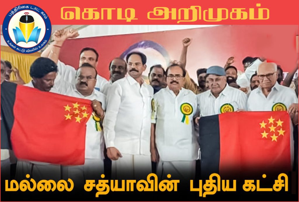 அவரது கட்சி கொடியில், கருப்பு-சிவப்பு நிறங்களில், 7 நட்சத்திரங்கள் காணப்படுகிறது. இந்த கொடியை தனது கட்சியின் கொடி என மல்லை சத்யா அறிமுகப்படுத்தினார். தனது கட்சியின் பெயரை நவம்பர் 20 ஆம் தேதி அறிவிப்பதாக மல்லை சத்யா தெரிவித்தார்.