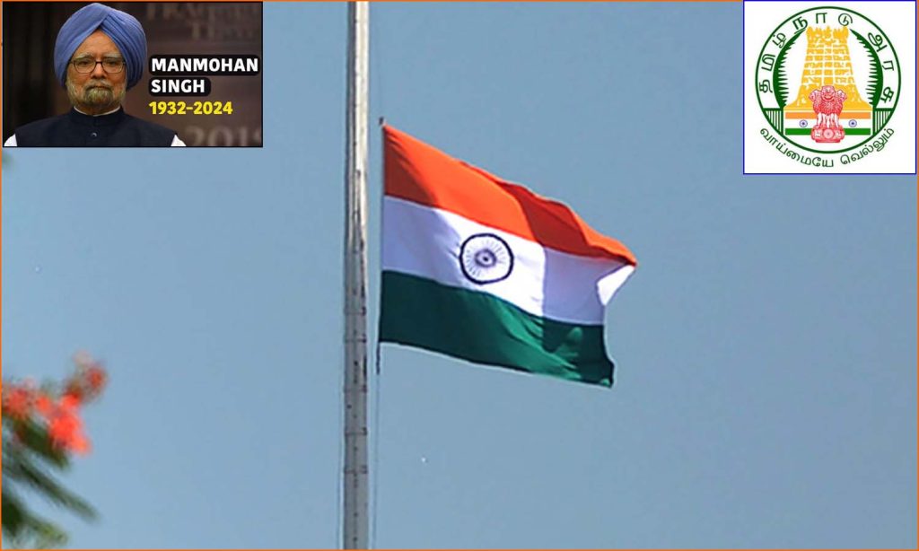 அதன்படி ஜனவரி 01ம் தேதி வரை துக்கம் அனுசரிக்கப்படும். தமிழ்நாட்டில் 7 நாட்கள் அரசு அலுவலகங்களில் தேசிய கொடி அரைக்கம்பத்தில் பறக்கவிடப்படும் என்று அறிவித்துள்ளது.
