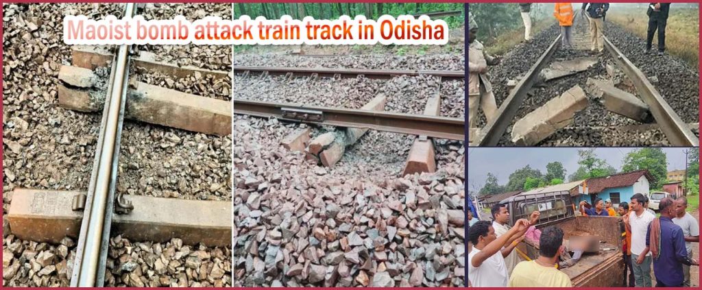 ஒடிஸா மாநிலத்தில் ஆகஸ்டு 3ந்தேதி அன்று இரவு மூன்று இடங்களில் ரயில் தண்டவாளத்தை மாவோயிஸ்டு தீவிரவாதிகள் வெடிகுண்டுகளை வைத்து தகா்த்தனா். ஒடிஸா-ஜாா்க்கண்ட் எல்லையில் சுந்தா்கா் மாவட்டத்தில் இந்த குண்டு வெடிப்புகள் நிகழ்ந்தன. இதில் ரயில்வே ஊழியா் ஒருவா் உயிரிழந்தாா். மேலும் ஒருவா் படுகாயமடைந்தாா் .