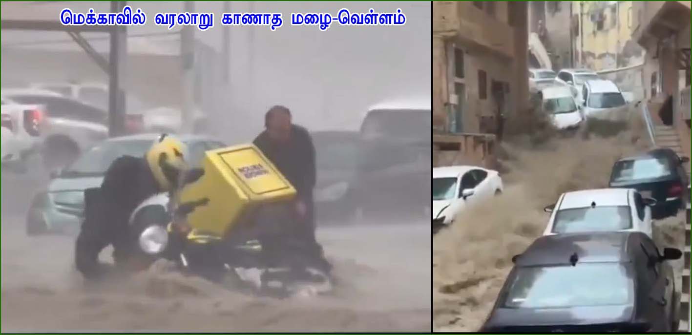 இஸ்லாமியர்களின் புனித தலங்களான மெக்கா, மதீனா போன்ற பகுதிகளில் இதுவரை இல்லாத அளவுக்கு பெய்த கனமழை காரணமாக, நகரின் பல பகுதிகள் வெள்ளத்தில் மிதக்கின்றன. சவுதி அரேபியாவின் மெக்கா மற்றும் மதீனாவில் நேற்று ஒரே நாளில் பெய்த 49.2 மி.மீ அளவுக்கு பெய்த ஆலங்கட்டி மழையால் பல பகுதிகளில் வெள்ளப்பெருக்கு ஏற்பட்டுள்ளது.