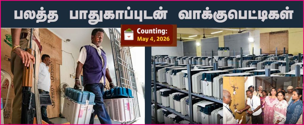 இந்த மையங்களில் தற்போது 24 மணி நேரமும் துப்பாக்கிய ஏந்திய போலீஸாா் பாதுகாப்பு பணியில் இருக்கிறாா்கள். பாதுகாப்பு ஏற்பாடுகளை அந்தந்தப் பகுதி மாவட்டத் தோ்தல் அலுவலா்கள், காவல் துறை உயா் அதிகாரிகள் பாா்வையிட்டு, ஆய்வு செய்து வருகின்றனா்..