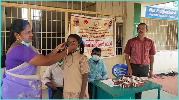 பள்ளி சிறார்களுக்கு கண் பரிசோதனை செய்து சுமார் 8,22,232 மாணவர்களுக்கு இலவசமாக கண் கண்ணாடிகள் வழங்கப்பட்டுள்ளன.