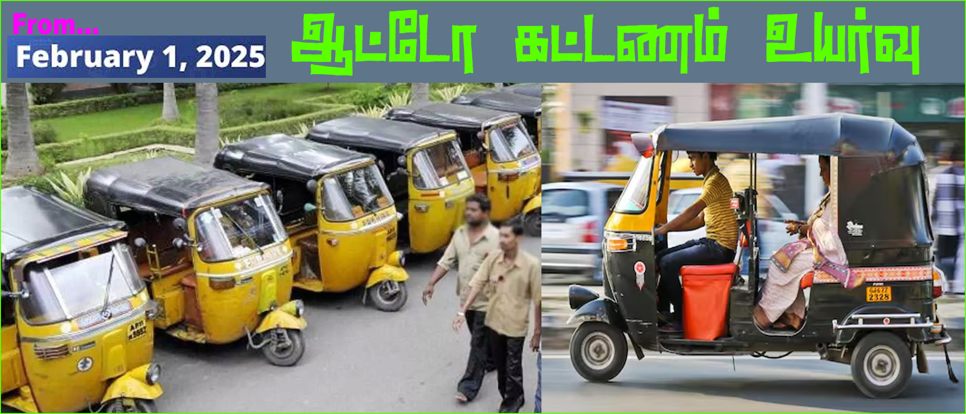 இந்த நிலையில், பிப்ரவரி 1ந்தேதி முதல் புதிய ஆட்டோ கட்டணம் நடைமுறைக்கு வருவதாக ஆட்டோ தொழிற்சங்கம் அறிவித்து உள்ளது. இதுகுறித்து,  ஆட்டோ டிரைவர்கள் கூட்டமைப்பு சங்கங்களில் உள்ள உரிமை குரல் ஓட்டுனர் தொழிற்சங்கத்தின் பொதுச்செயலாளர் டி.ஏ.ஜாஹூர் ஹூசைன் அறிக்கை வெளியிட்டுள்ளார். அதில் கூறப்பட்டுள்ளதவாது,