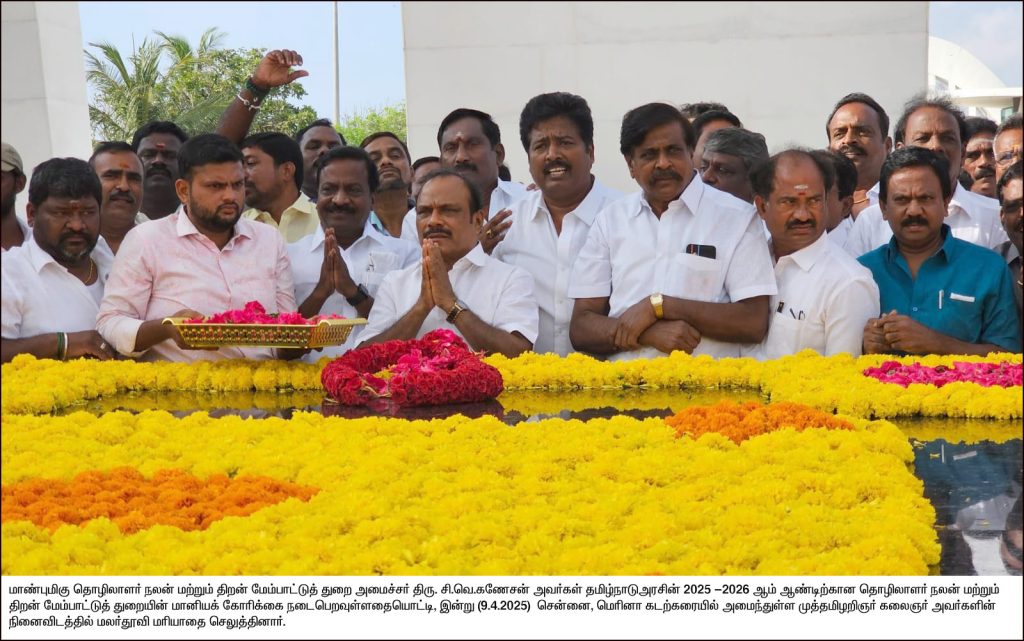 தமிழ்நாடு சட்டப்பேரவையில் ஏப்ரல் 9ந்தேதி அன்று தொழிலாளர் நலன் மற்றும் திறன் மேம்பாட்டுத் துறை மானியக் கோரிக்கை மீதான விவாதம் நடைபெற்றது. விவாதத்து பதில் அளித்து பேசிய தொழிலாளல் நலத்துறை அமைச்சர் சி.வெ.கணேசன், முக்கிய 11 அறிவிப்புகள் வெளியிட்டார்.