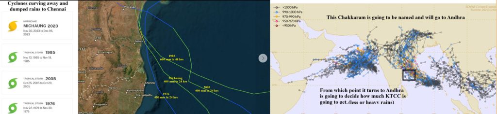 1. காட்சி 1 ( (Full Bus to KTCC): வடக்கு TN-க்கு அருகில் வராமல், திறந்த கடல்களில் இருந்து ஆந்திராவுக்குச் செல்லாமல் , அதாவது, வடக்கு TN கடற்கரைக்கு அருகில் வராமல் திறந்த கடலில் திரும்பினால் (சென்னை) கனமழையை இழக்கும், சாதாரண மழை மட்டுமே கிடைக்கும்