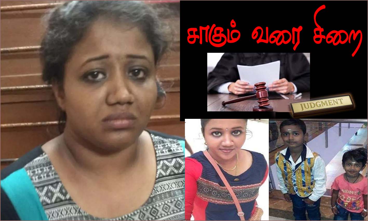 திருமணத்தை மீறிய உறவுக்காக தனது 2 குழந்தைகளை கொன்ற வழக்கில் அபிராமியும், காதலன் மீனாட்சி சுந்தரமும் குற்றவாளி என தீர்ப்பு வழங்கிய மகளிர் நீதிமன்றம், அவர்களுக்கான தண்டனையை விவரங்களையும் வெளியிட்டுள்ளது.