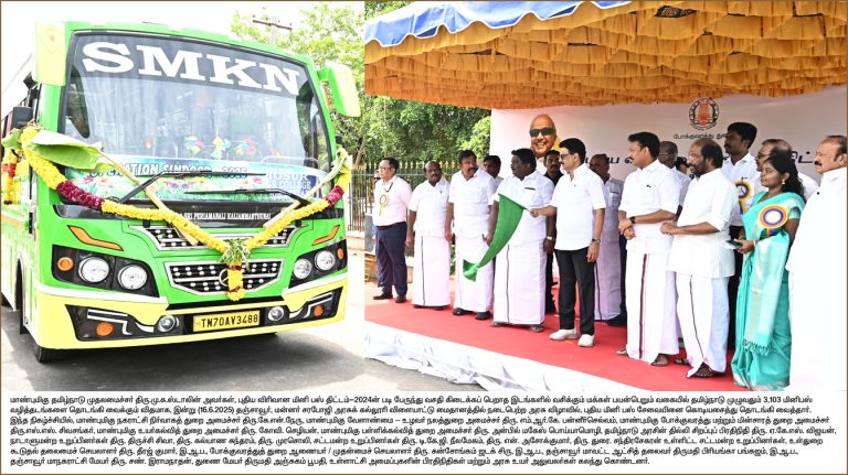 சென்னை: தமிழ்நாட்டில் இதுவரை பேருந்து இயக்கப்படாத 25,708 கி.மீ. நீளத்திற்கு புதிதாக பேருந்து வசதிகள் ஏற்படுத்தப்பட்டு உள்ளது. இந்த பகுதிகளுக்கான மின் பஸ் சேவையை முதலமைச்சர் ஸ்டாலின் தஞ்சாவூரில் நடைபெற்ற நிகழ்ச்சியில் தொடங்கி வைத்தார். கிராமங்கள் உள்பட பேருந்து வசதி கிடைக்கப்பெறாத இடங்களில் வசிக்கும் மக்கள் பயன்பெறும் வகையில் புதிய விரிவான மினிபஸ் திட்டம்- 2024ன் படி புதிய மினி பஸ் சேவையினை முதலமைச்சர் மு.க.ஸ்டாலின் தொடங்கி வைத்தார். அதன்படி, தமிழ்நாட்டில் பேருந்து இயக்கப் படாத 25,708 … Continue reading இதுவரை பேருந்துகள் இயக்கப்படாதபகுதிகளுக்கு புதிதாக மினி பஸ் சேவை! தொடங்கி வைத்தார் முதல்வர் ஸ்டாலின்