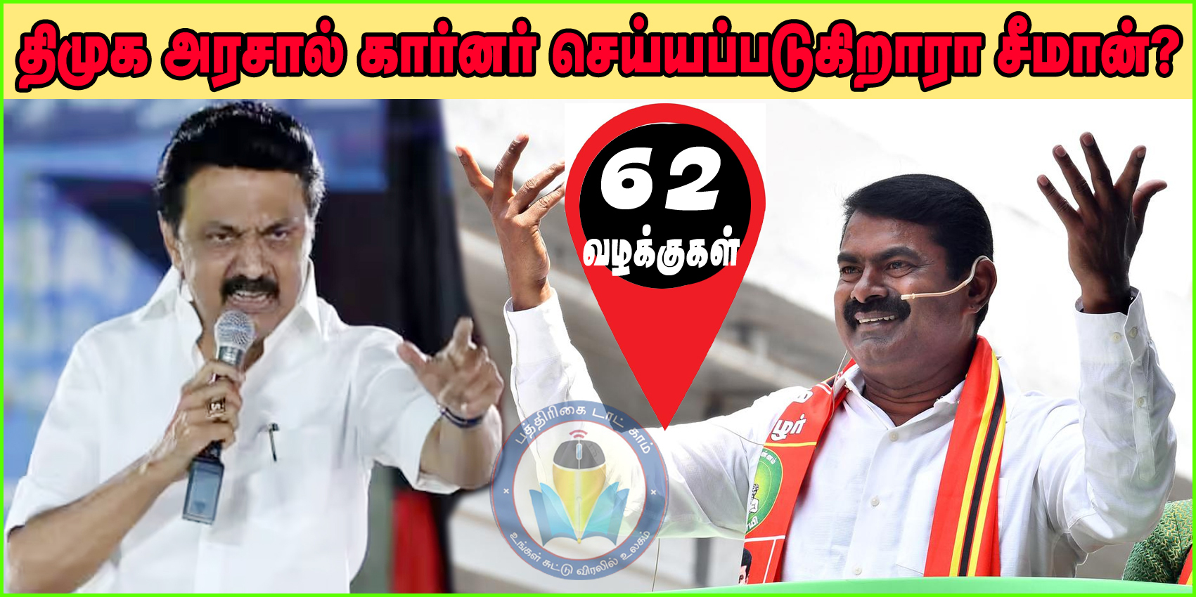 இதனால், ஸ்டாலின் தலைமையிலான திமுக அரசு, சீமானை முடக்க பல்வேறு வகையில் முயற்சித்து வருகிறது. ஏற்கனவே அவ்வப்போது அவர்மீது பல வழக்குகளை போட்டுள்ள நிலையில், தற்போது, பெரியார் குறித்து சீமான் விமர்சனம் செய்ததை, தனது கட்சி மற்றும் ஆதரவு கட்சியினர் மூலமாக காவல்துறையில் புகார்கள் கொடுக்கவும், நீதிமன்றத்தில் வழக்கு தொடரவும் மறைமுகமாக உதவி வருகிறது. அதன்பயனாக, சீமான்மீது கடந்த ஓரிரு நாளில் மட்டும் அனைத்து மாவட்டங்களிலும் திமுகவினர் மற்றும் திகவினரால் புகார்கள் கொடுக்கப்பட்டு உள்ளது. அதன்படி, ஜனவரி 10ந்தேதி வரை 62 வழக்குகள் பதிவு செய்யப்பட்டு உள்ளது. அரசியலில் வளர்ந்து வரும் சீமானை முடக்கும் நோக்கில் திமுக அரசு செயல்பட்டு வருவதாக சமூக வலைதளங்களில் விமர்சனங்கள் எழுந்து வருகிறது.