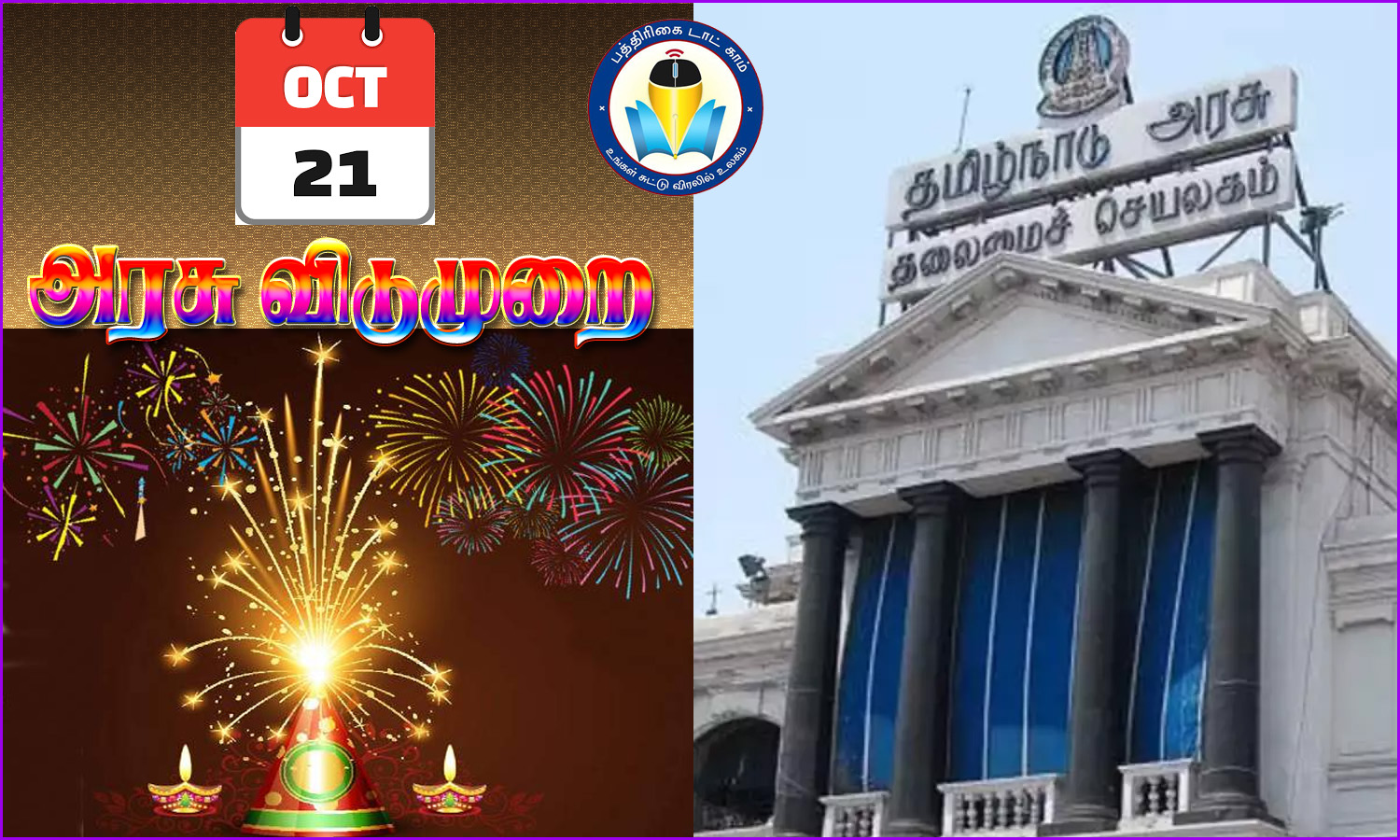 “இந்த ஆண்டு 20.10.2025 அன்று தீபாவளி பண்டிகையை முன்னிட்டு தமது சொந்த ஊர்களுக்குச் சென்று திரும்பும் மாணவர்கள், அவர்தம் பெற்றோர்கள், ஆசிரியர்கள், அரசு அலுவலர்கள் மற்றும் பொதுத் துறை நிறுவனங்களில் பணிபுரியும் ஊழியர்கள் ஆகியோரின் நலனைக் கருத்தில் கொண்டு 21.10.2025 அன்று ஒரு நாள் மட்டும், தமிழ்நாடு முழுவதும் உள்ள அனைத்து அரசு அலுவலகங்கள், பொதுத்துறை நிறுவனங்கள், பள்ளிகள், கல்லூரிகள் மற்றும் கல்வி நிறுவனங்களுக்கு விடுமுறை அளிக்கவும், அந்த விடுமுறை தினத்தை ஈடு செய்யும் வகையில் 25.10.2025 அன்று பணி நாளாக அறிவித்து தமிழ்நாடு அரசு உத்தரவிட்டுள்ளது”