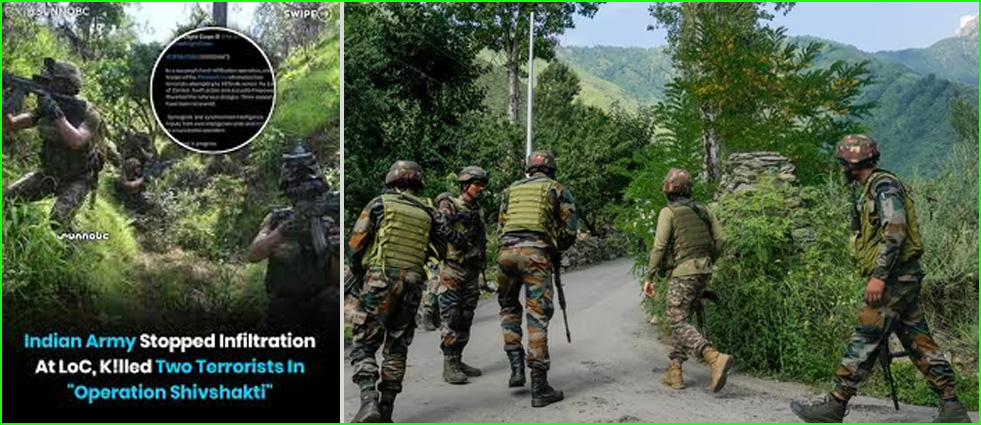 இந்திய எல்லைக்குள் ஊடுருவ முயன்ற இரண்டு பயங்கரவாதிகளை ஆபரேசன் சிவசக்தி நடவடிக்கையின் மூலம் இந்திய ராணுவ வீரர்கள் இன்று (புதன்கிழமை காலை சுட்டுக் கொன்றனர் . உளவுத் துறை தகவலை அடுத்து ஜம்மு – காஷ்மீரின் பூஞ்ச் மாவட்டத்தில் பயங்கரவாதிகளை தேடும் பணி, இந்திய ராணுவத்தின் வொயிட் நைட் கார்ப்ஸ் தலைமையில் நடைபெற்றது.