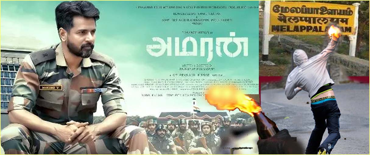 இந்த நிலையில், நெல்லை அருகே மேலப்பாளையத்தில் உள்ள தியேட்டர் ஒன்றில் அமரன் படம் வெளியாகி ஒடிக்கொண்டிருக்கிறது. நேற்றும் வழக்கம்போல தியேட்டரில் படம் ஒடிக்கொண்டிருந்த நிலையில், திரையரங்கு வளாகத்தில் மர்ம நபர்கள் பெட்ரோல் குண்டு வீசியுள்ளனர்.