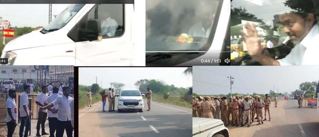 விஜய் வருகையை முன்னிட்டு, பரந்தூர் – காஞ்சிபுரம் சந்திப்பு பகுதியில் போலீசார் தீவிர சோதனை நடத்தி வருகின்றனர். வருபவர்கள் ஏகனாபுரம் உள்ளிட்ட கிராமத்தைச் சேர்ந்தவர்களா என ஆய்வு செய்கின்றனர். இதுவரை 30க்கும் மேற்பட்ட வேன்களில் பொதுமக்கள் வருகை. வெளியூர் நபர்களை போலீசார் திருப்பி அனுப்பி வருகின்றனர்.