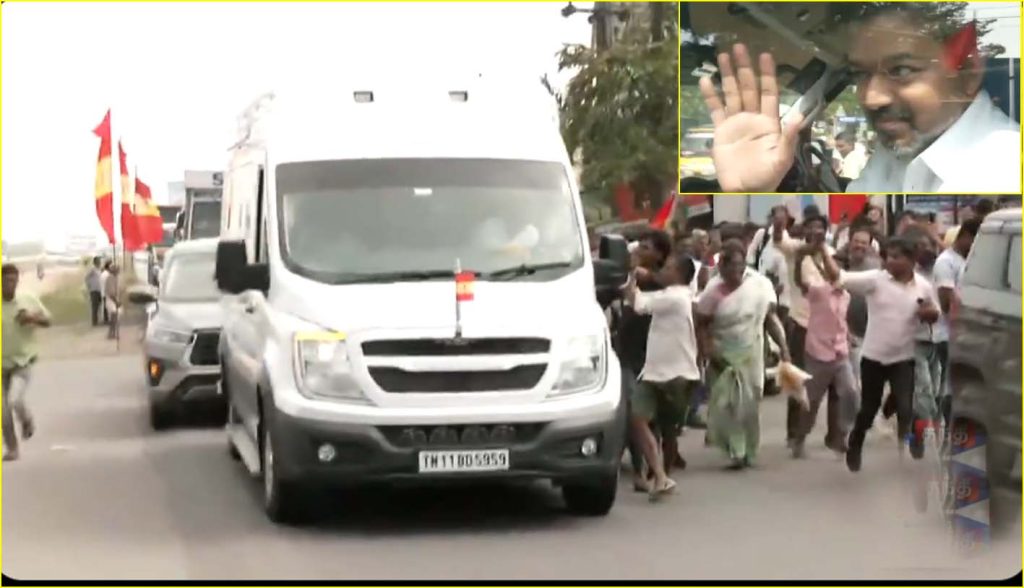 இந்த நிலையில், புதிய விமான நிலையத்திற்கு எதிராக போராடி வரும் கிராம மக்களை சந்தித்து ஆதரவு தெரிவிக்க, விஜய் இன்று (ஜன.,20) பரந்துார் புறப்பட்டார். அவர் வீடு அமைந்துள்ள பனையுரில் தனது இல்லத்தில் இருந்து, பிரசார வேனில், புறப்பட்டார்.