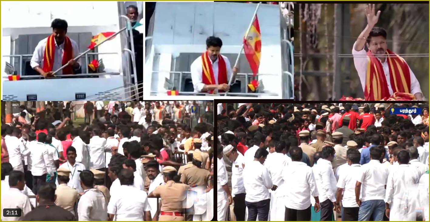 இந்த நிலையில், பரந்தூர் வந்த விஜய்க்கு, வழிநெடுக தவெம தொண்டர்கள், பொதுமக்கள் வரவேற்பு அளித்தனர். பரந்தூர் வந்த விஜய், மக்களை சந்திக்க அனுமதி வழங்கப்பட்டுள்ள இடத்தில், மக்களிடையே உரையாற்றினார்.