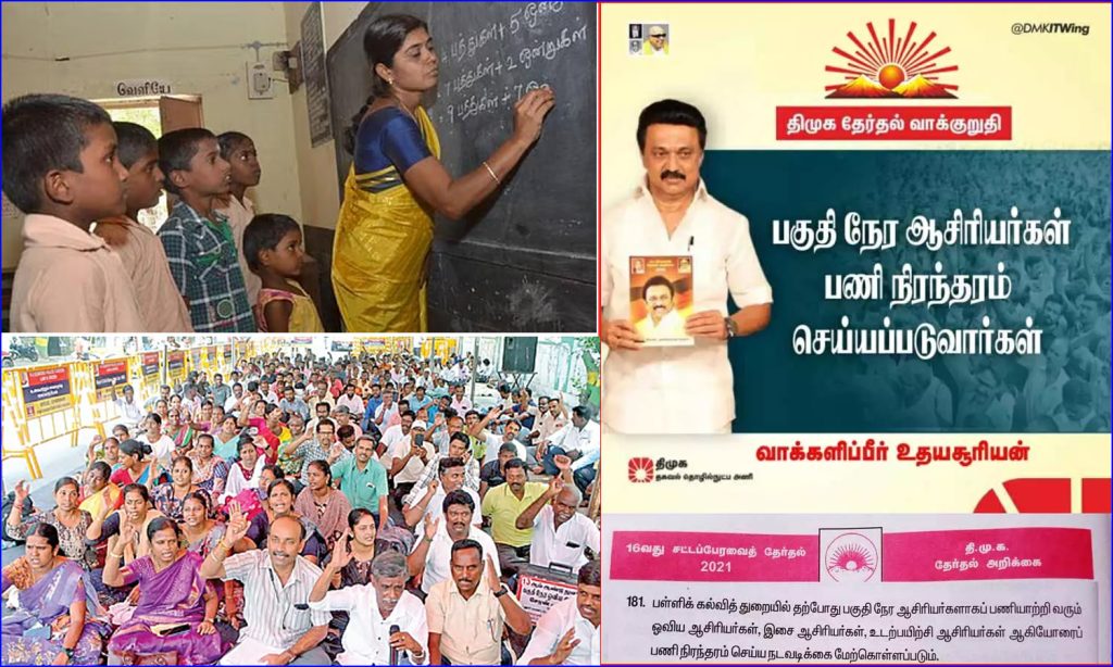இதற்கிடையே பகுதிநேர ஆசிரியர்கள், தங்களை பணி நிரந்தரம் செய்ய வலியுறுத்தி சென்னையில் கடந்த ஜனவரியில் தொடர் போராட்டம் நடத்தினர். அந்த போராட்டத்தின் போது பெரம்பலூரைச் சேர்ந்த ஆசிரியர் கண்ணன் தற்கொலை செய்து கொண்ட சம்பவம் பெரும் சர்ச்சையானது.