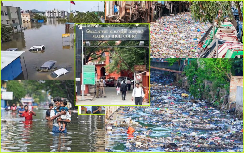 மிக்ஜாம் புயலால் ஏற்பட்ட வெள்ளம் வடியாமல் தேங்கி நின்றதற்கு பிளாஸ்டிக் மற்றும் பிற கழிவுகள் நீர் வழிப்பாதையை அடைத்ததே காரணம் என்று நேரடியாக குற்றம் சாட்டியதடன், பெருநகர சென்னை மாநகராட்சி வரம்புக்குள் பிளாஸ்டிக் கழிவுகளை தரம் பிரிக்கும் முறை மோசமாக செயல்படுத்தப்படுகிறது என்று சாடினர்,