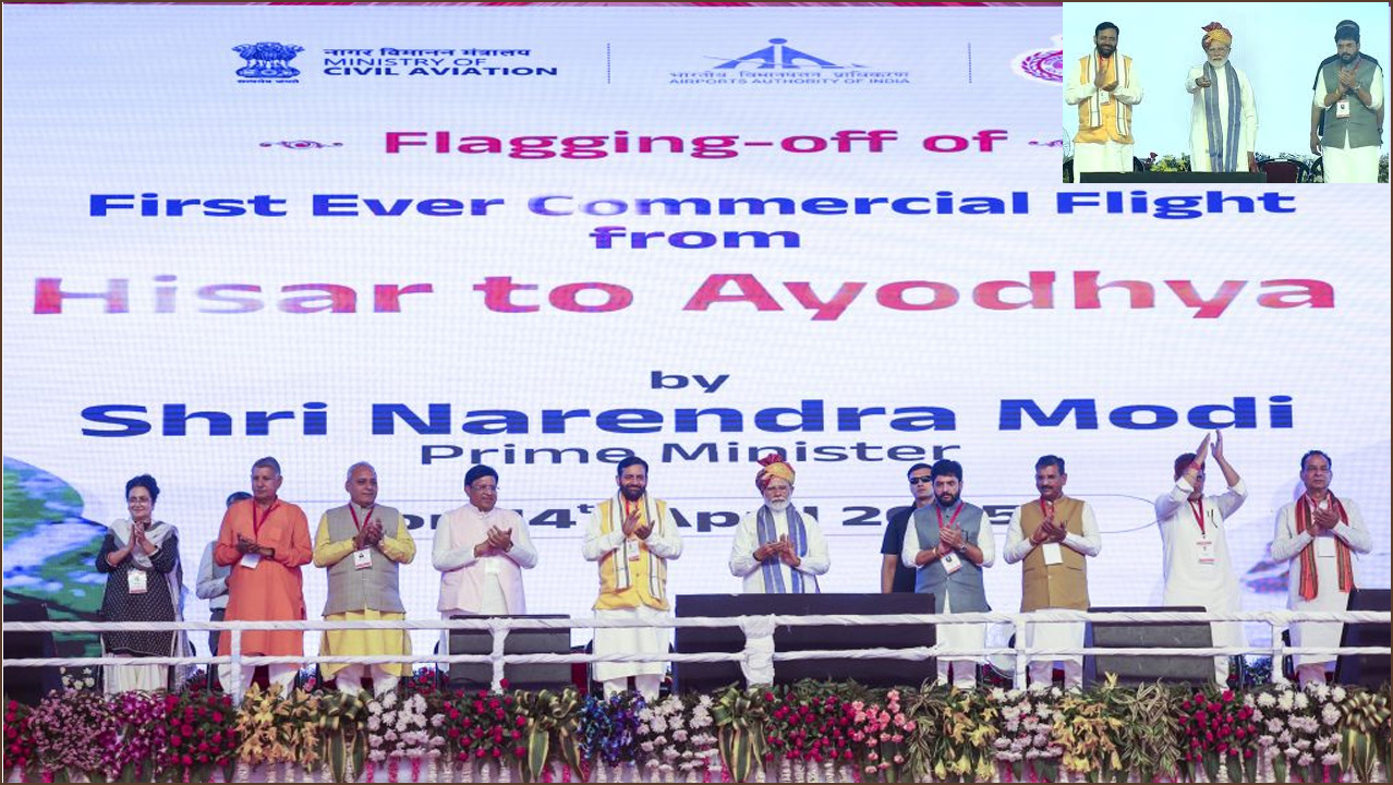 ஹரியானா முதல்வர் நயாப் சிங் சைனி மற்றும் மத்திய சிவில் விமான போக்குவரத்து அமைச்சர் கிஞ்சராபு ராம்மோகன் நாயுடு ஆகியோருடன், ஹிசாரில் இருந்து அயோத்திக்கு செல்லும் 70 இருக்கைகள் கொண்ட அலையன்ஸ் ஏர் விமானத்தை பிரதமர் கொடியசைத்து தொடங்கி வைத்தார்.