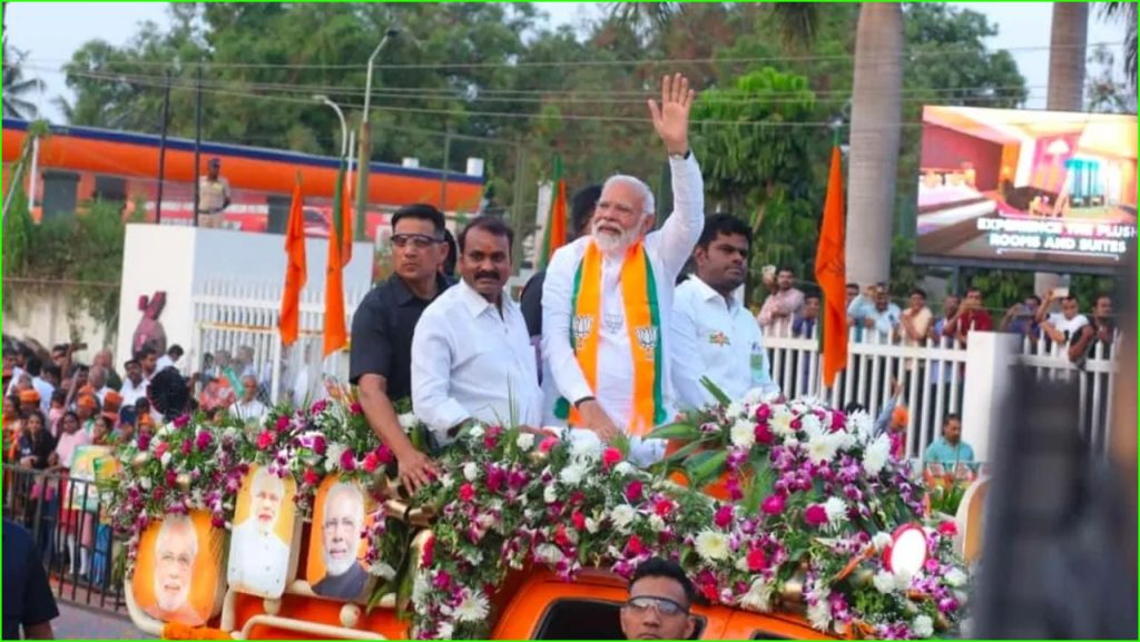 பிரதமர் மோடி இன்று சென்னையில் ரோடு ஷோ நடத்திவிட்டு, இரவு ஆளுநர் மாளிகையில் ஓய்வு எடுக்கிறார். தொடர்ந்து, நாளை காலை வேலூரிலும், பிற்பகல் மேட்டுப்பாளையத்தில் நீலகிரியில் போட்டியிடும் மத்திய இணையமைச்சர் எல்.முருகனை ஆதரித்தும் பரப்புரையில் ஈடுபட உள்ளார்.