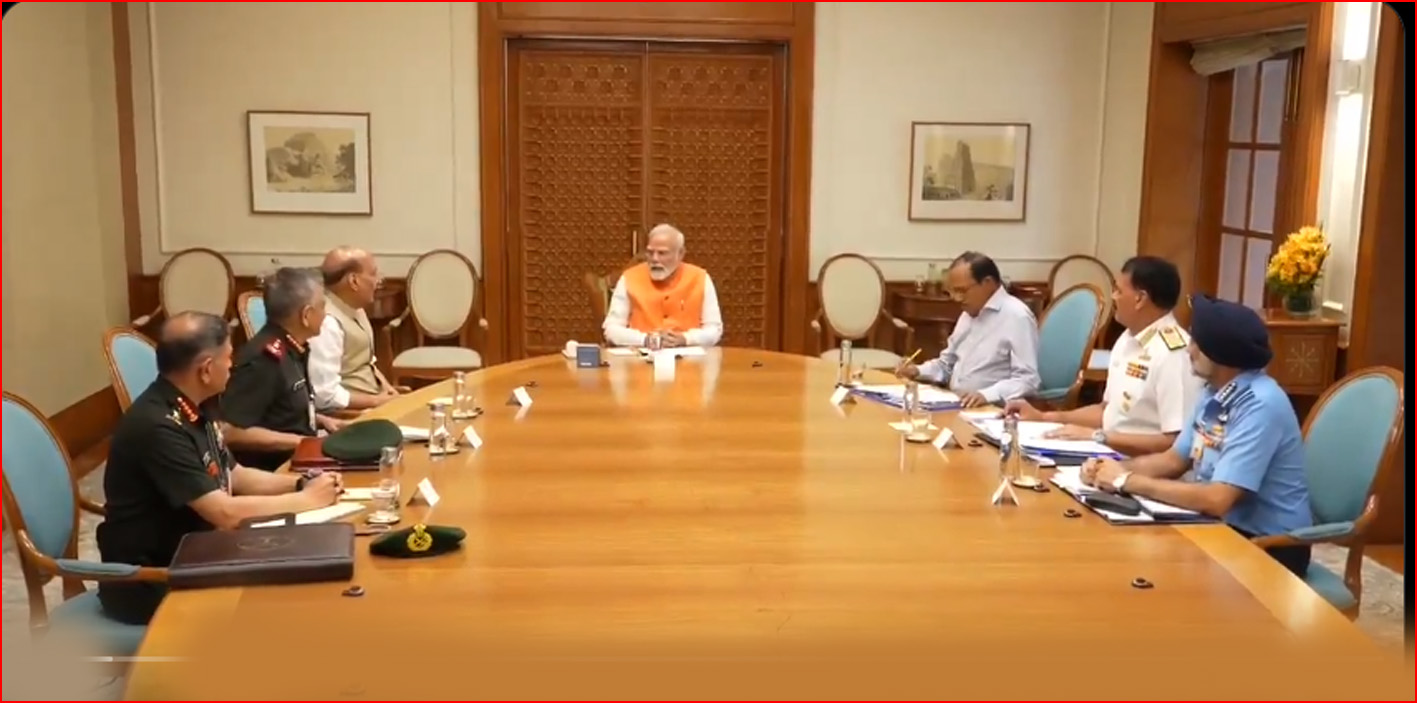 இநத் நிலையில், இன்று முப்படை தளபதிகளுடன், டெல்லியில் பிரதமர் மோடி தலையிலான ஆலோசனைக் கூட்டம் நடைபெற்றுள்ளது. இந்த கூட்டத்தில் பாதுகாப்புத் துறை அமைச்சர் ராஜ்நாத் சிங், தேசிய பாதுகாப்பு ஆலோசகர் (NSA) அஜித் தோவல், முப்படைத் தளபதிகள், முப்படைத் தலைமை தளபதி அனில் சவுகான் ஆகியோர் கலந்து கொண்டு ஆலோசனைகளை வழங்கியுள்ளனர்.