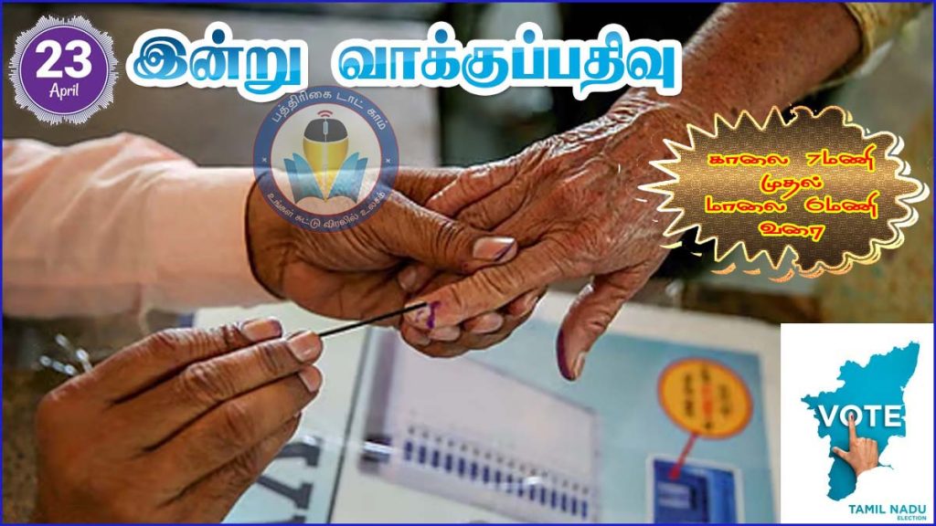 தமிழ்நாட்டில் ஏப்ரல் 23 அன்று ஒரே கட்டமாக சட்டப்பேரவைத் தேர்தல் நடைபெறுகிறது. தமிழ்நாட்டில் சுமார் 4,000 வேட்பாளர்கள் போட்டியிடுகின்றனர். அதேபோன்று, https://elections.tn.gov.in/, votervazhikatti.tn.gov.in ஆகிய இணையதளங்கள் வாயிலாக வாக்குச்சாவடி விவரங்களை அறியலாம். தமிழ்நாட்டில் 75,000-க்கும் அதிகமாகமான வாக்குச்சாவடிகள் அமைக்கப்பட்டுள்ளன.