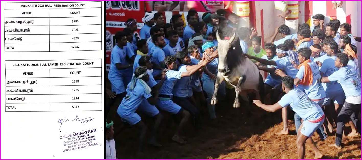 மதுரை: பொங்கல் பண்டிகையையொட்டி, மதுரையில் நடைபெறும் உலகப்புகழ்பெற்ற அவனியாபுரம், அலங்காநல்லூர், பாலமேடு ஜல்லிக்கட்டு போட்டிகளில் பங்கேற்க 5347 மாடு பிடி வீரர்கள் முன்பதிவு செய்துள்ளனர். அதுபோல, இந்த போட்டிகளில் தங்களது காளைகளை இறக்க, 12632 காளைகளையும் அதன் உரிமையாளர்கள் பதிவு செய்துள்ளனர்.