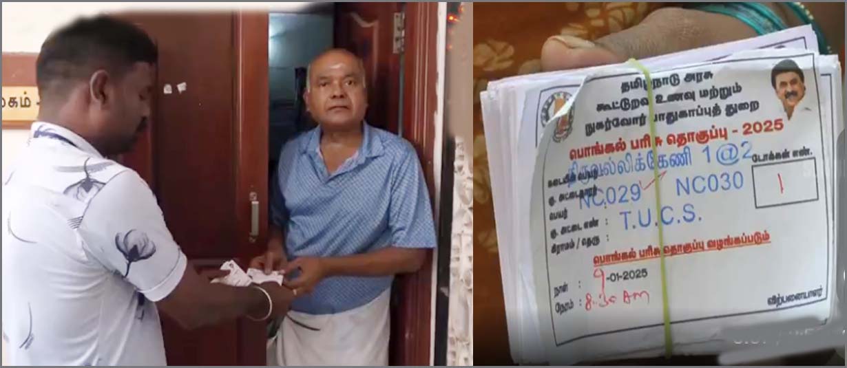 இதையடுத்து, பொங்கல் பரிசு தொகுப்புக்கான டோக்கன்கள் சம்பந்தப்பட்ட ரேஷன் கடைகள் மூலம் இதற்கான டோக்கன் இன்று முதல் வழங்கப்பட்டு வருகிறது. முதன்முதலாக துணைமுதல்வர் ஸ்டாலின் தொகுதியான, சேப்பாக்கம் தொகுதியில் டோக்கன் விநியோகம் தொடங்கியது. சென்னை திருவல்லிக்கேணி விக்டோரியா விடுதி பகுதியில் உள்ள குடும்பங்களுக்கு டோக்கன் விநியோகம் தொடங்கி உள்ளது. ரேஷன் கடை ஊழியர்கள் வீடு வீடாக சென்று டோக்கன் விநியோகம் செய்து வருகின்றனர்.