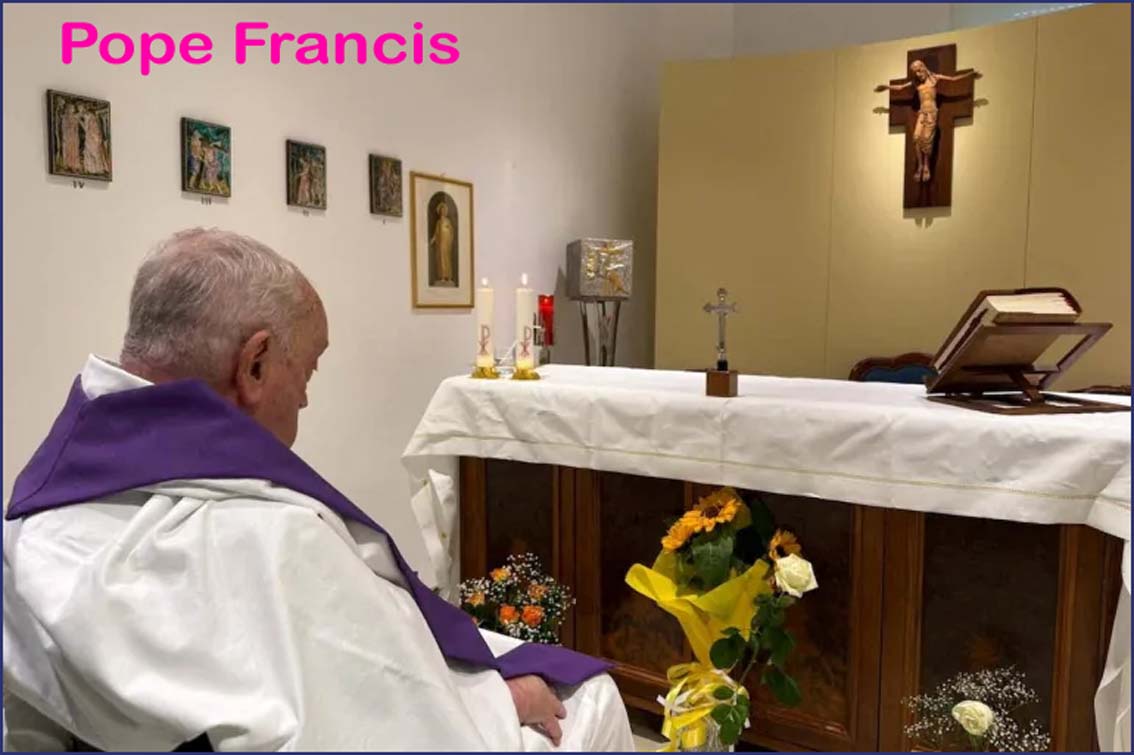 தொடக்கத்தில், மருத்துவமனையில் அனுமதிக்கப்பட்டுள்ள போப் பிரான்சிஸ் உடல்நிலை நாளுக்கு நாள் மோசமடைந்து வருவதாக கூறப்பட்டது. பின்னர் அவருக்கு அளிக்கப்பட்ட சிகிச்சைகள் காரணமாக, அவர் உடல்நிலையில் நல்ல முன்னேற்றம் கண்டுள்ளது. தற்போது அவர் மருத்துவமனையில் உள்ள தேவாலயத்தில் பிரார்த்தனை செய்து வரும் புகைப்படத்தை கத்தோலிக்க தலைமை நிலையமான வாடிகன் வெளியிட்டு உள்ளது.