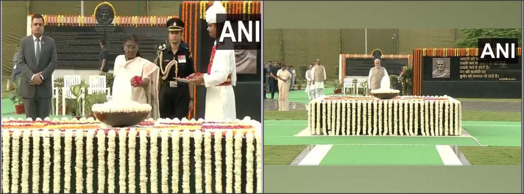டெல்லி: இந்திய முன்னாள் பிரதமர்  அடல் பிஹாரி வாஜ்பாயின் நினைவு தினத்தை முன்னிட்டு, டெல்லியில் உள்ள  ‘சதைவ் அடல்’ நினைவிடத்தில் குடியரசுத் தலைவர் முர்மு, பிரதமர் மோடி ஆகியோர் மலர் அஞ்சலி செலுத்தினர்.