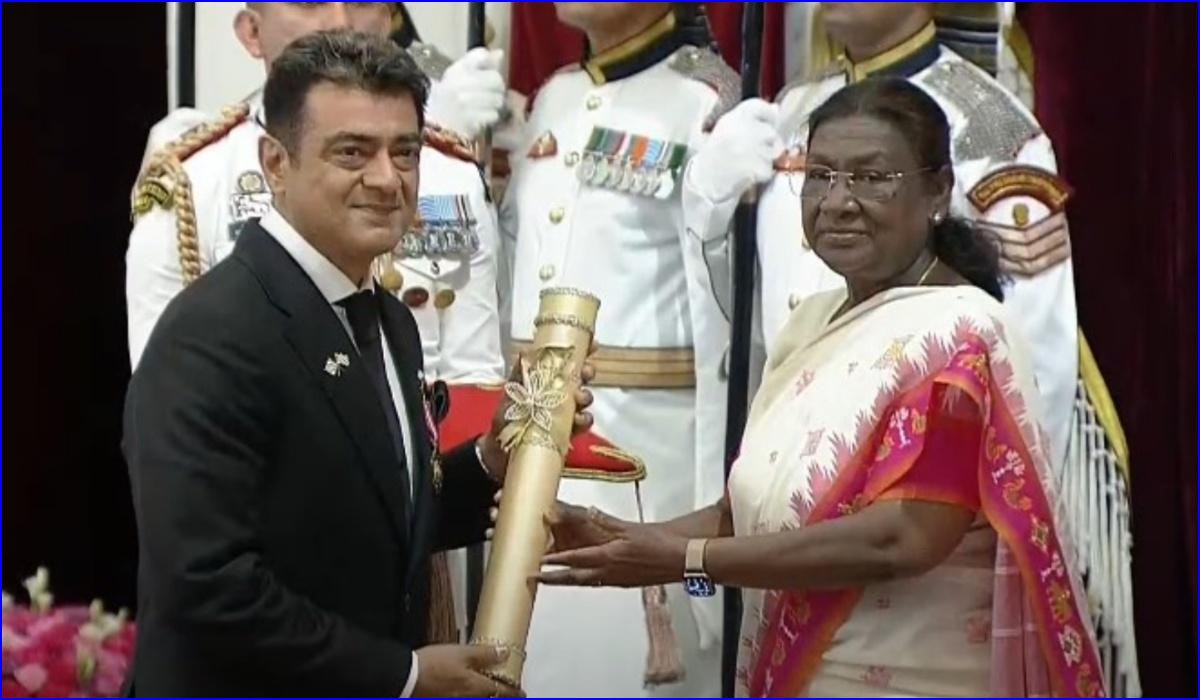 டெல்லி:  குடியரசு தலைவர் மாளிகையில் நடைபெற்ற விழாவில்,  நடிகர் அஜித் குமாருக்குகுடியரசுத் தலைவர் திரவுபதி முர்மு பத்ம பூஷண் விருதை  வழங்கி கவுரவித்தார்.