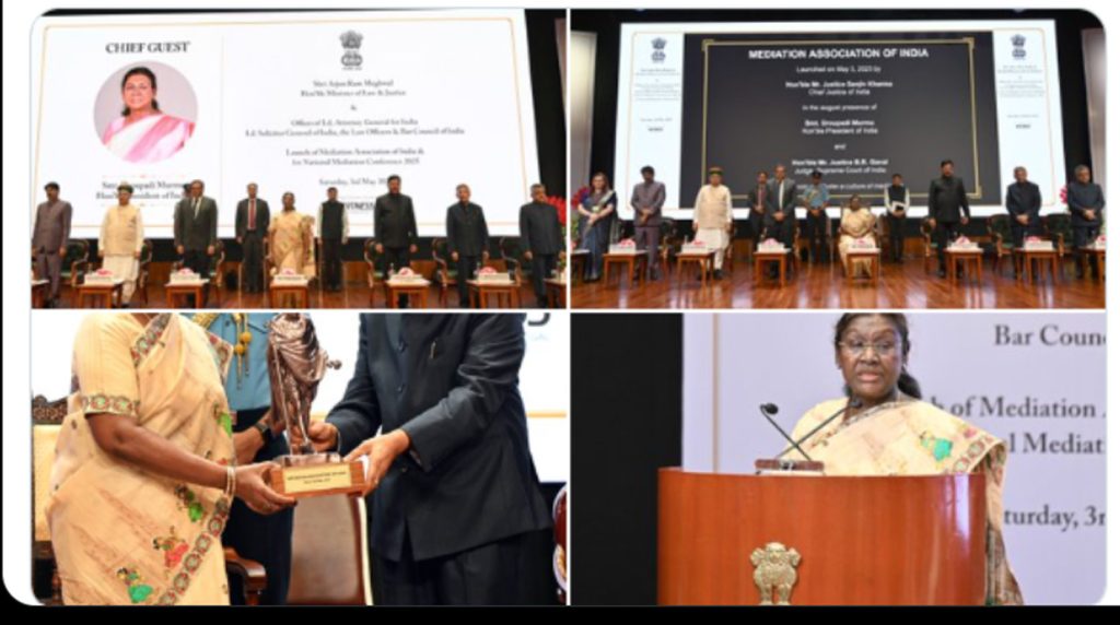தலைநகர் டெல்லியில் தேசிய மத்தியஸ்த மாநாடு நடைபெற்றது. இந்த நிகழ்ச்சியில் கலந்துகொண்ட உச்சநீதிமன்றத் தலைமை நீதிபதி சஞ்சீவ் கன்னா, இந்திய மத்தியஸ்த சங்கத்தை தொடங்கிவைத்தாா். இந்த நிகழ்ச்சியில் குடியரசு தலைவர் முர்மு, சட்டத்துறை அமைச்சர் அன்ஜுன்ராம் மெக்வால் உள்பட நீதித்துறை, சட்டத்துறை தலைவர்கள் கலந்துகொண்டனர்.