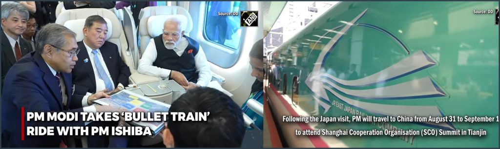 ஜப்பான் பிரதமர் ஷிகெரு இஷிபாவுடன், பிரதமர் மோடி E5 ஷின்கன்சனின் எனும் அதிகபட்ச வேகம் கொண்ட மணிக்கு 320 கிமீ வேகத்தில் செல்லும் புல்லட் ரயிலில் செண்டாய் நகரத்திற்குச் சென்றார். அதே நேரத்தில் ஜப்பானில் இன்னும் சோதனைகளில் உள்ள E10 ஷின்கன்சன் மணிக்கு 400 கிமீ வேகத்தில் இயக்கப்படும் புல்லட் ரயில் குறித்தும் கேட்டறிந்தார். மேலும், புல்லட் ரயிலை இயக்க பயிற்சி பெற்று வரும் இந்தியர்களை சந்தித்து பிரதமர் மோடி கலந்துரையாடினார்.