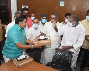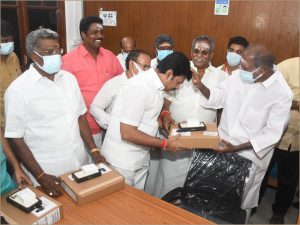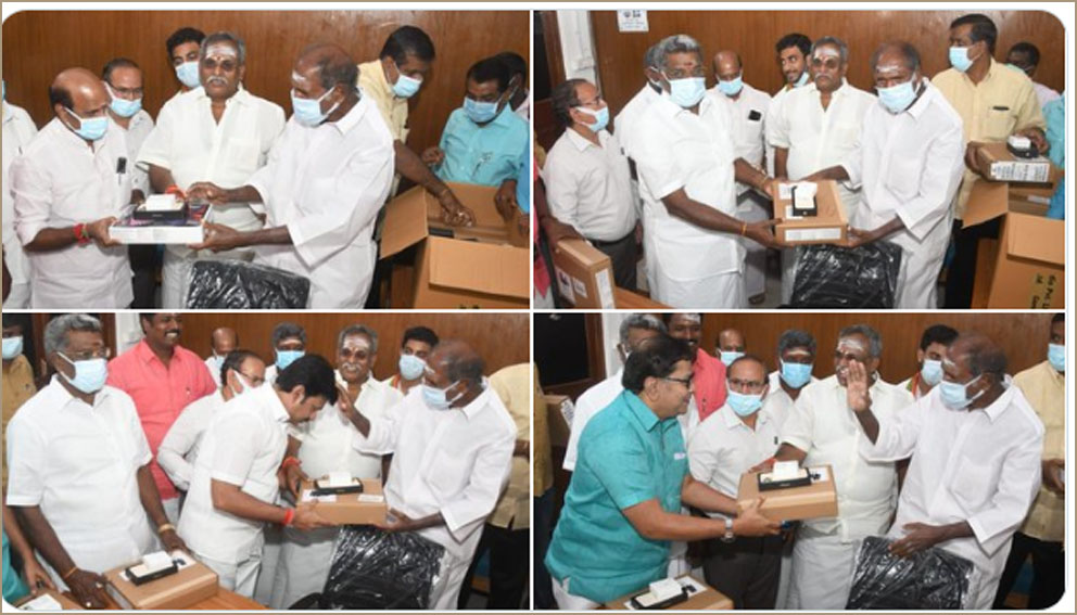 புதுச்சேரி: சட்டமன்ற உறுப்பினர்களுக்கு ஐபோன், ஐபேட், கம்ப்யூட்டர், பிரிண்டர் மற்றும் சட்டமன்ற உறுப்பினர்களின் அலுவலகங்களுக்கு தேவையான பொருட்களை முதல்வர் ரங்கசாமி இன்று வழங்கினார். இது சட்டமன்ற உறுப்பினர்களுக்கு மகிழ்ச்சியை ஏற்படுத்தி உள்ளது.