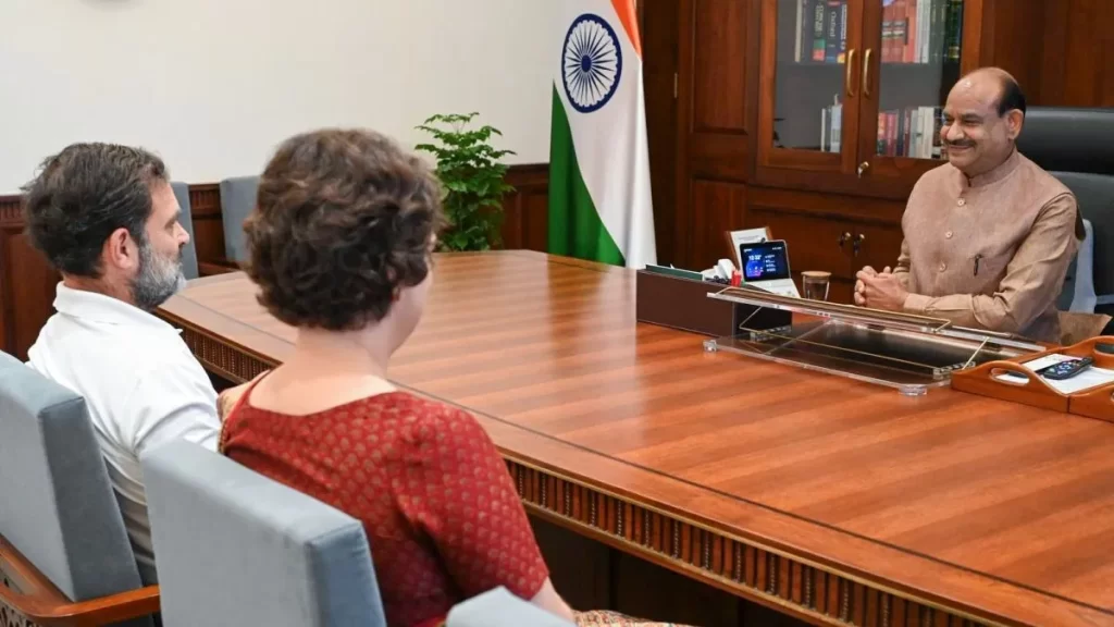 காங்கிரஸ் தலைவர் ராகுல் காந்தி நேற்று பிரியங்கா காந்தியுடன் சபாநாயகர் ஓம்  பிர்லாவை சந்தித்துள்ளார்.