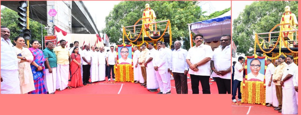 சென்னை கிண்டி, ஹால்டா சந்திப்பில் அமைந்துள்ள அவரது திருவுருவச்சிலைக்கு முதலமைச்சர் மு.க.ஸ்டாலின் மாலை அணிவித்து, மலர் தூவி மரியாதை செலுத்தினார். அவரது சிலைக்கு கீழ் அலங்கரித்து வைக்கப்பட்டுள்ள திருவுருவ படத்திற்கு முதலமைச்சர் மு.க.ஸ்டாலின் மலர்தூவி மரியாதை ச்யதார்.