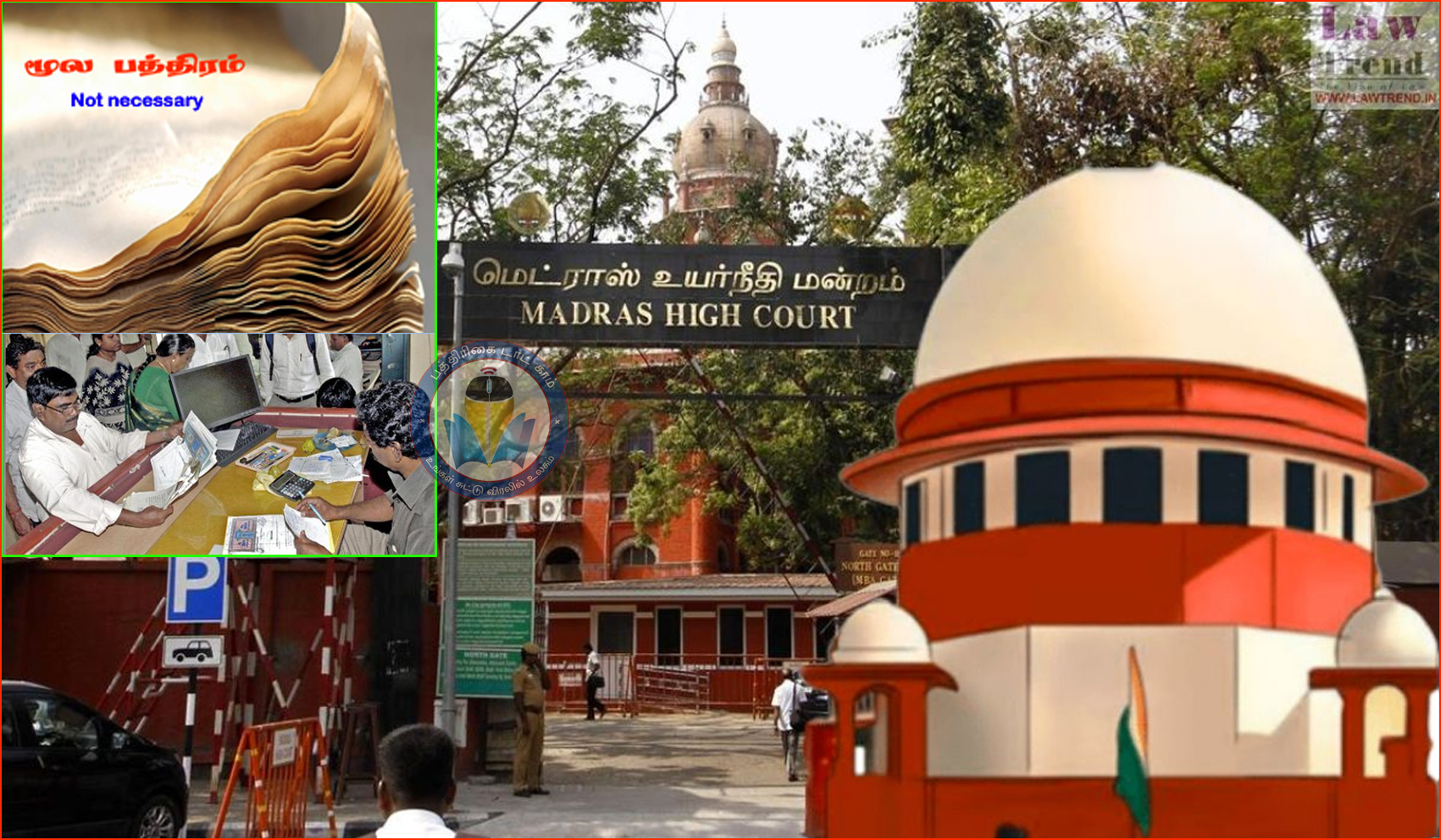 இந்த நிலையில், உச்சநீதிமன்றம், தாய்ப்பத்திரம் (மூலப்பத்திரம்) இல்லாமல் பத்திர பதிவு செய்ய முடியாது என்று அதிரடி தீர்ப்பு வழங்கி உள்ளது.